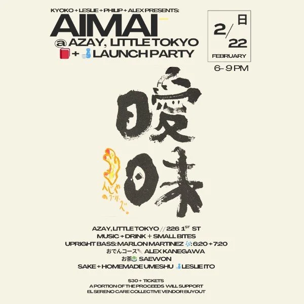 Join us at our favorite Little Tokyo spot, Azay for an 曖昧 (aimai) evening of live music and deep connection, delicious bites and drinks and a finely curated experience by your hosts Kyoko, Philip Leslie and Alex.